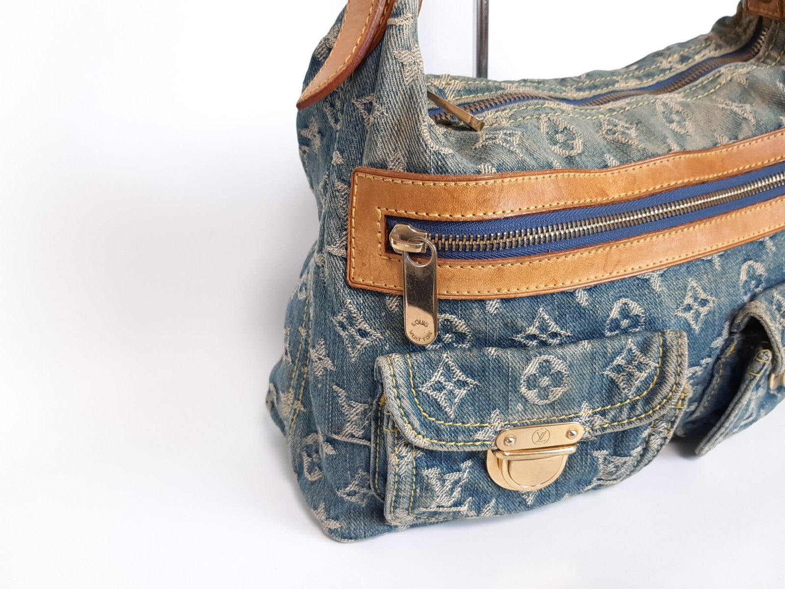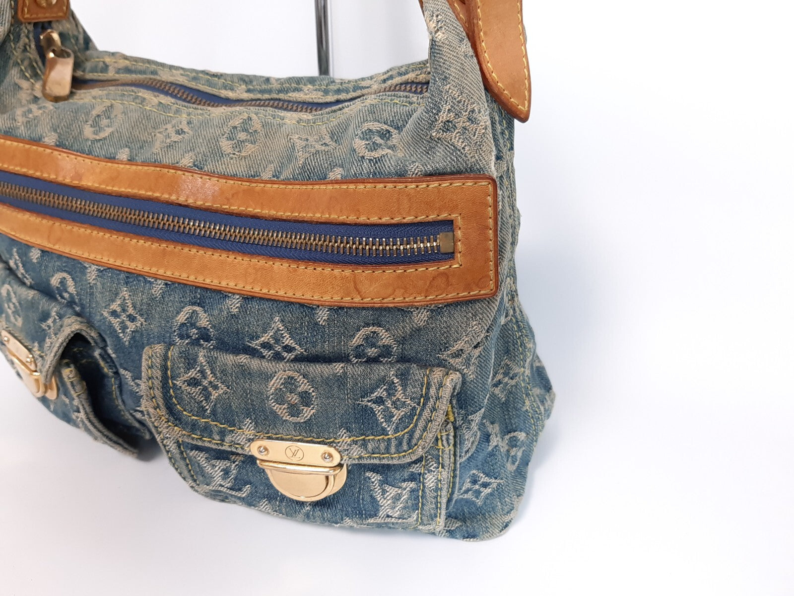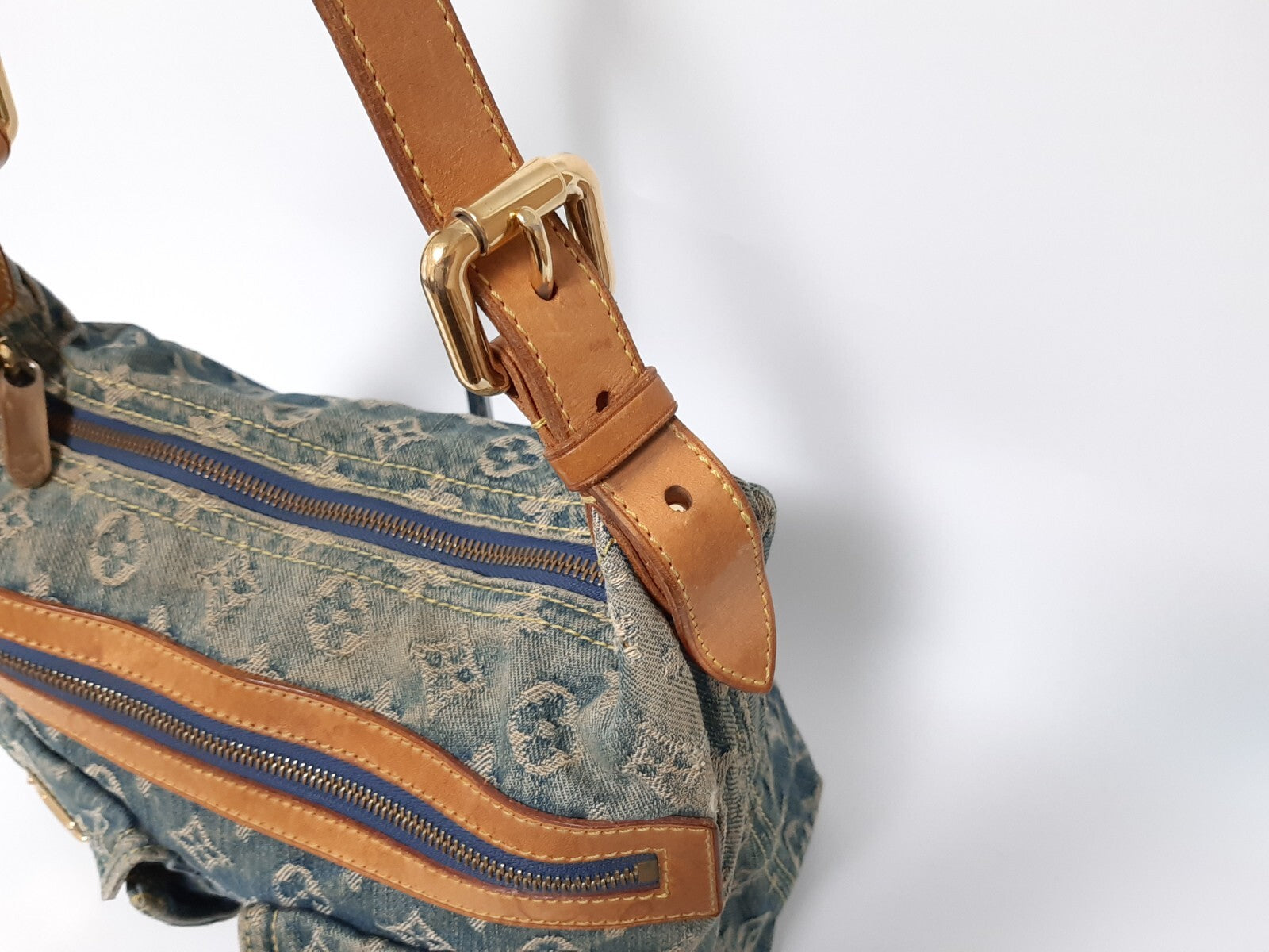Louis Vuitton Baggy PM Denim Shoulder Bag M95049 Blue Monogram Strap 0342