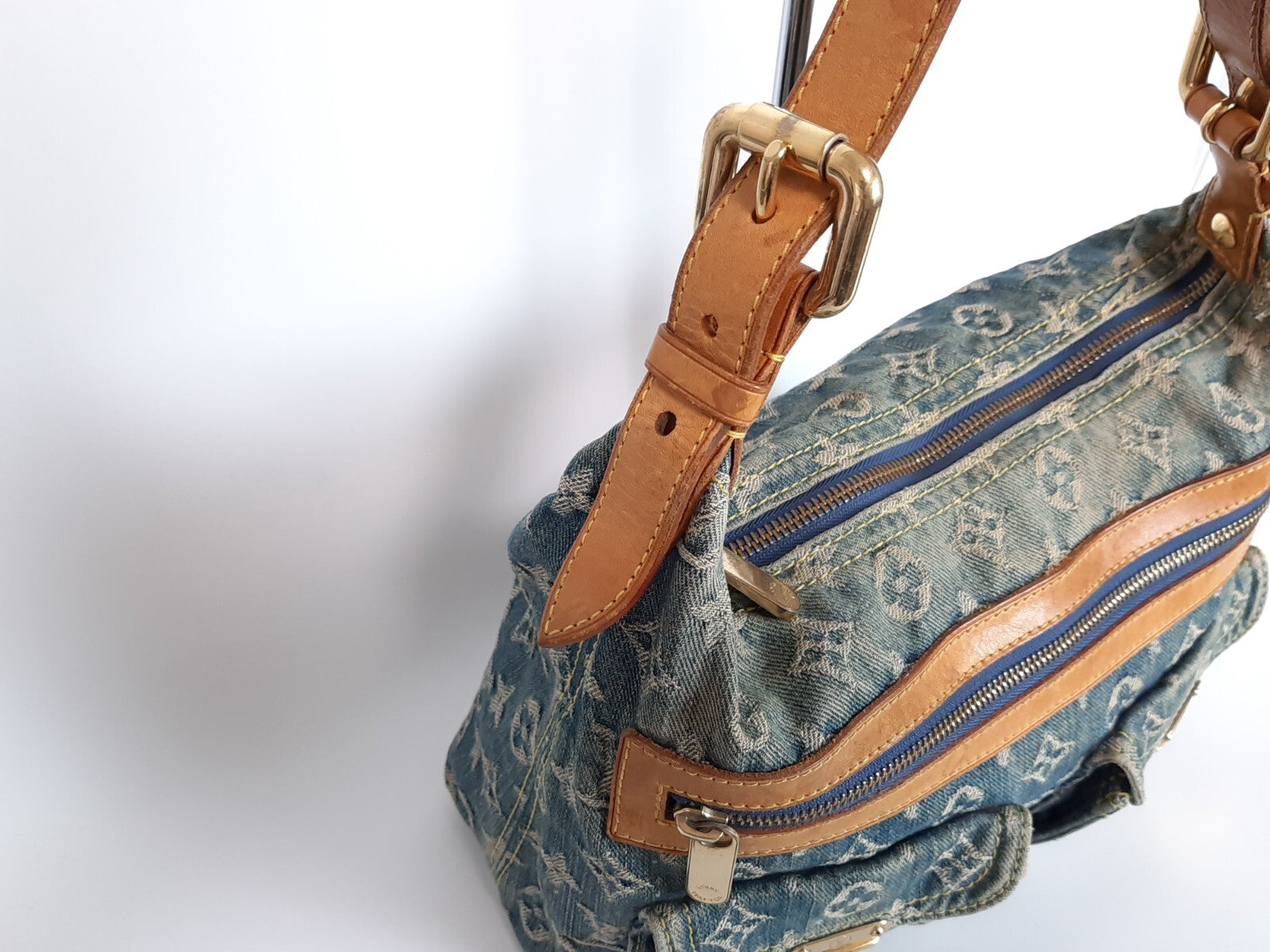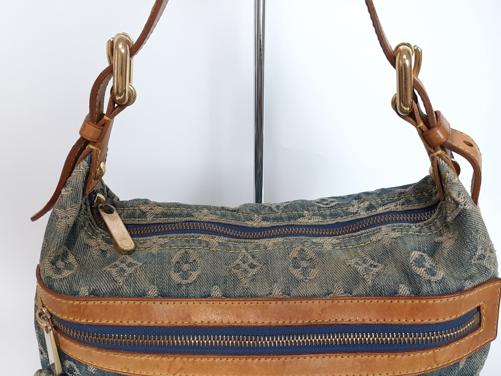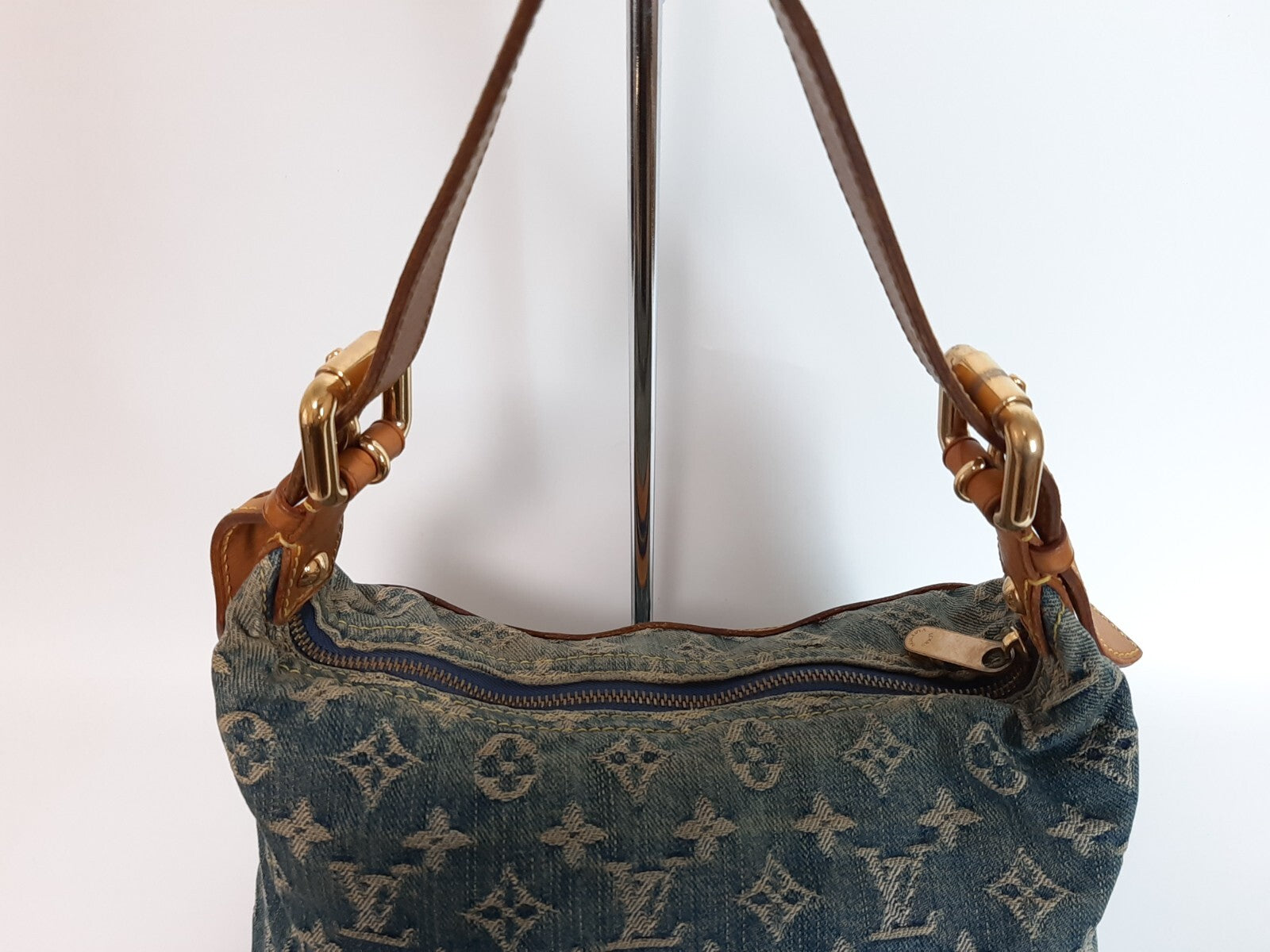 Louis Vuitton Baggy PM Denim Shoulder Bag M95049 Blue Monogram Strap 0342