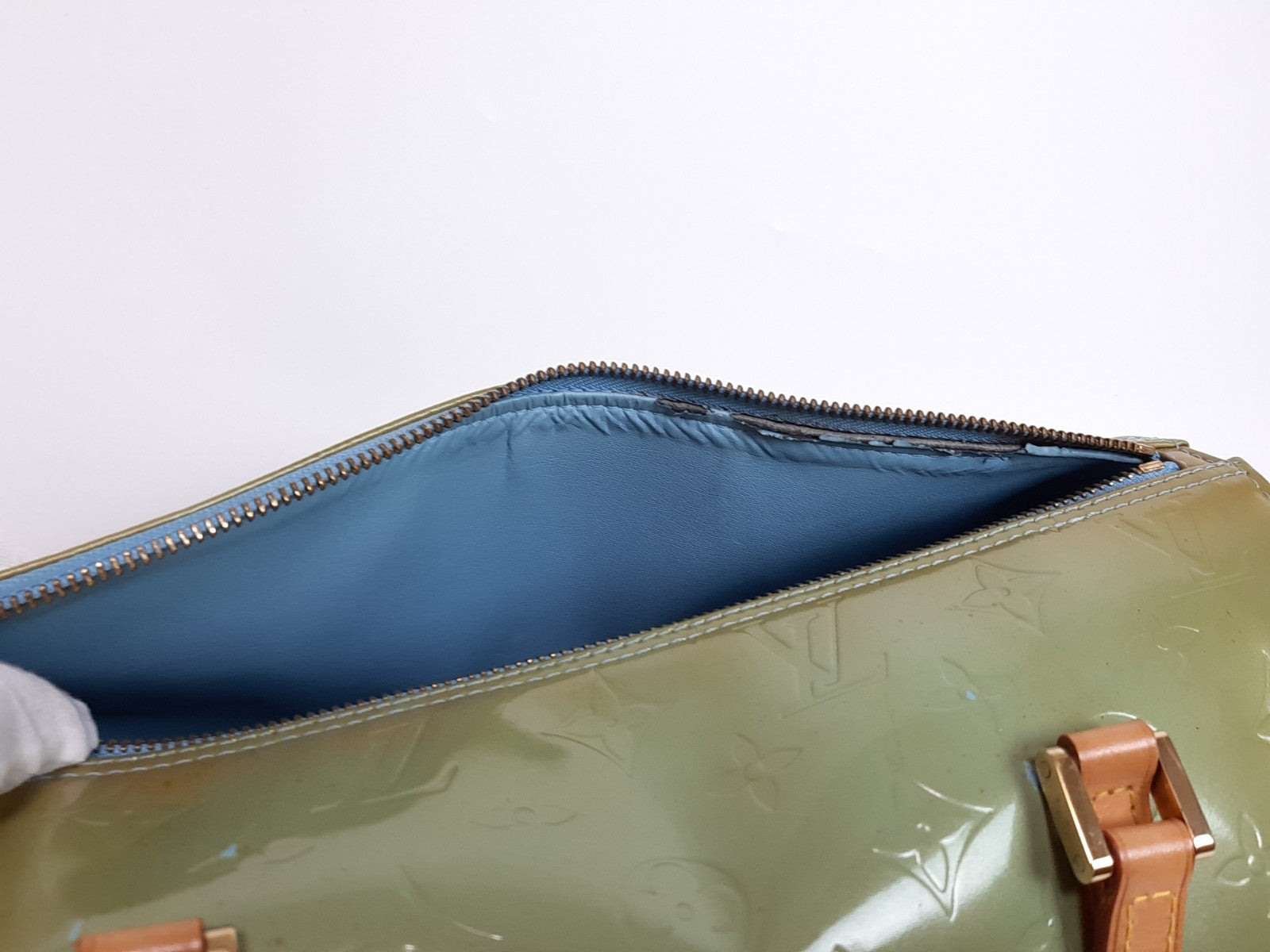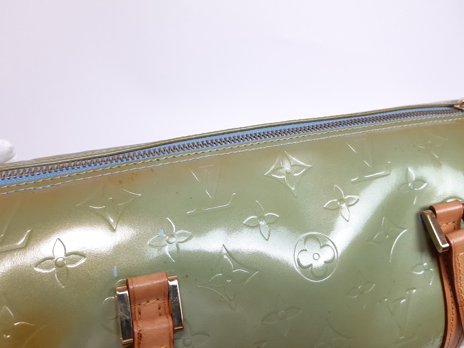 Louis Vuitton Vernis Bedford Hand Bag M91007 Vernis Monogram Green TH1908