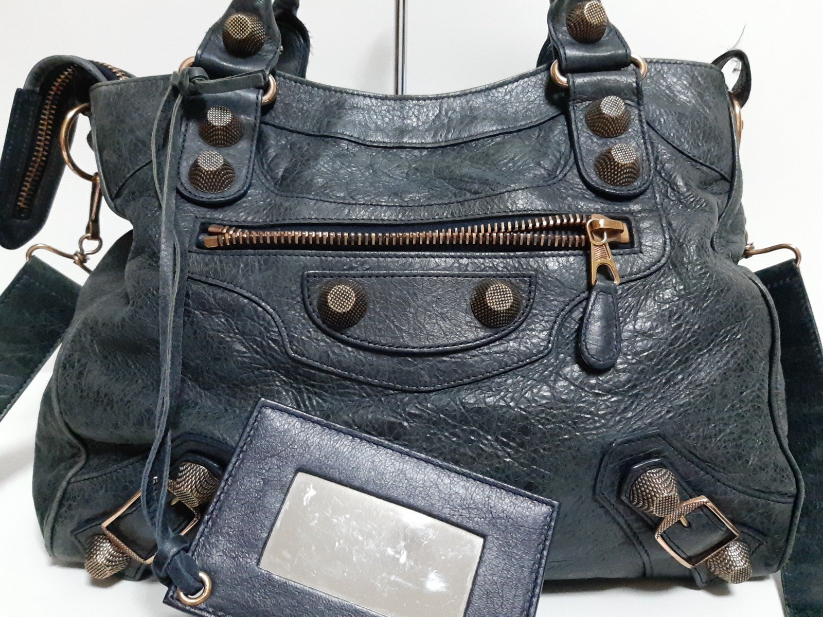 Balenciaga The Giant City 2Way Shoulder Hand Bag Black Gray With Strap Mirror