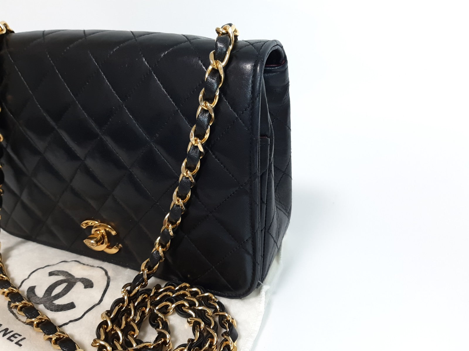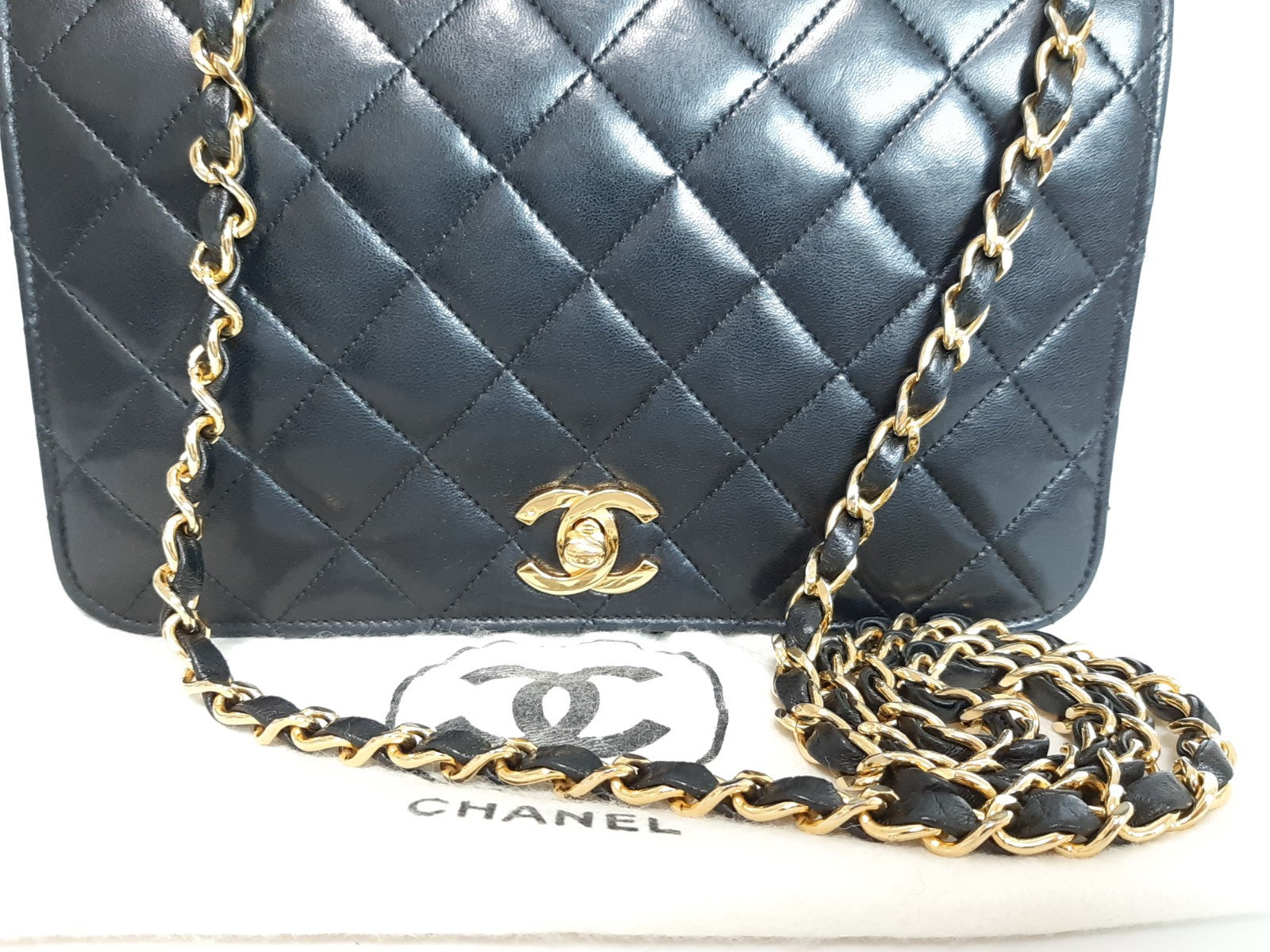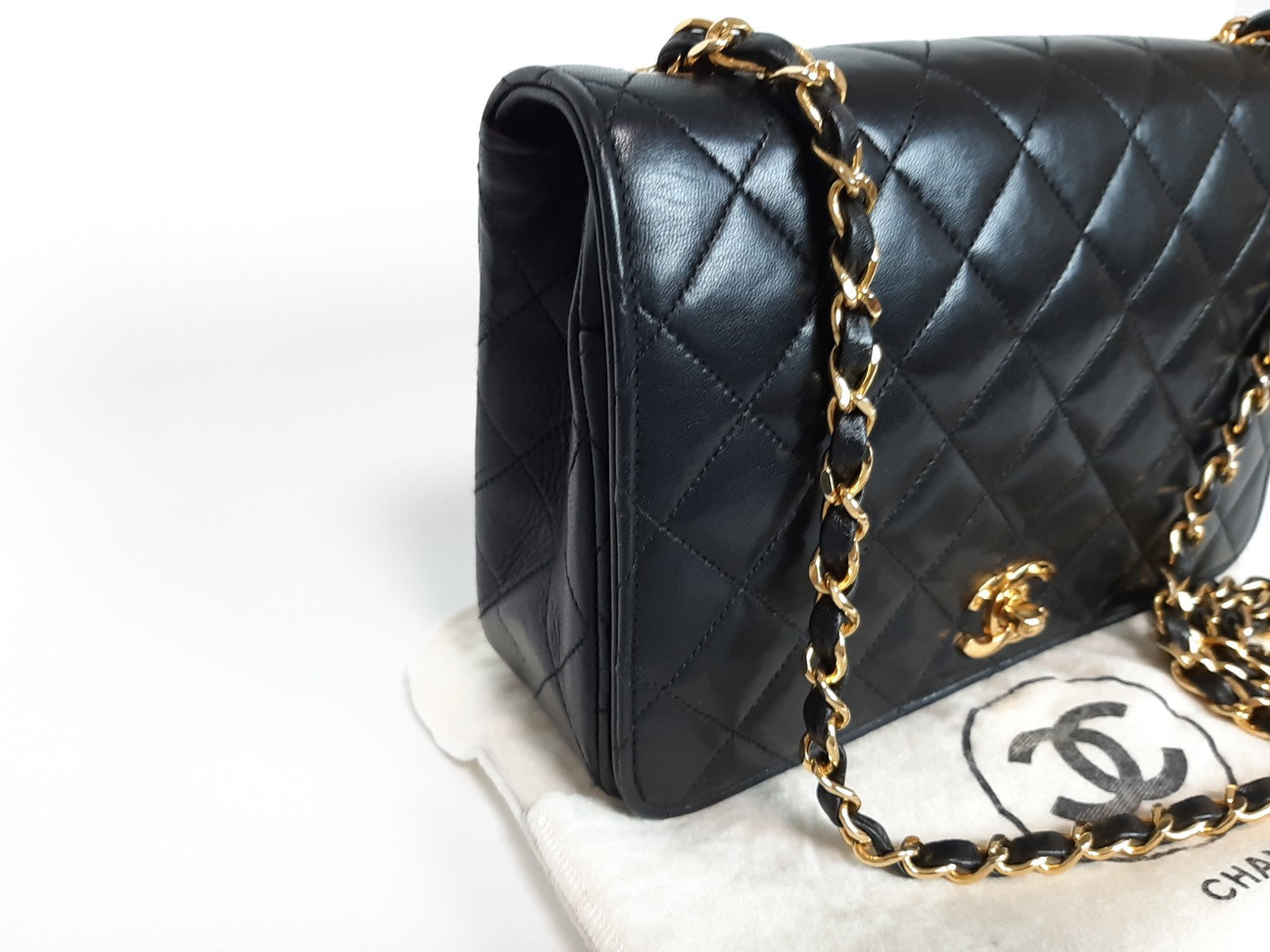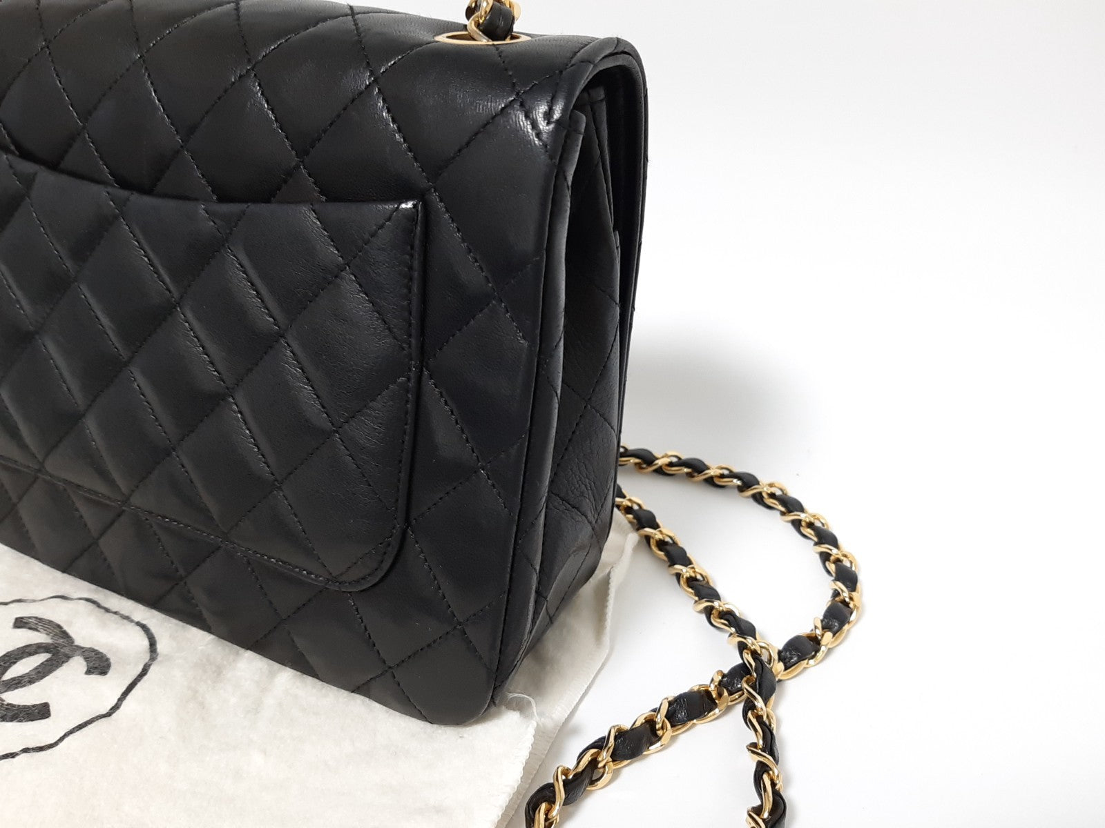 CHANEL Matelasse 25 Single Flap Chain Shoulder Bag Lambskin Black Guarantee