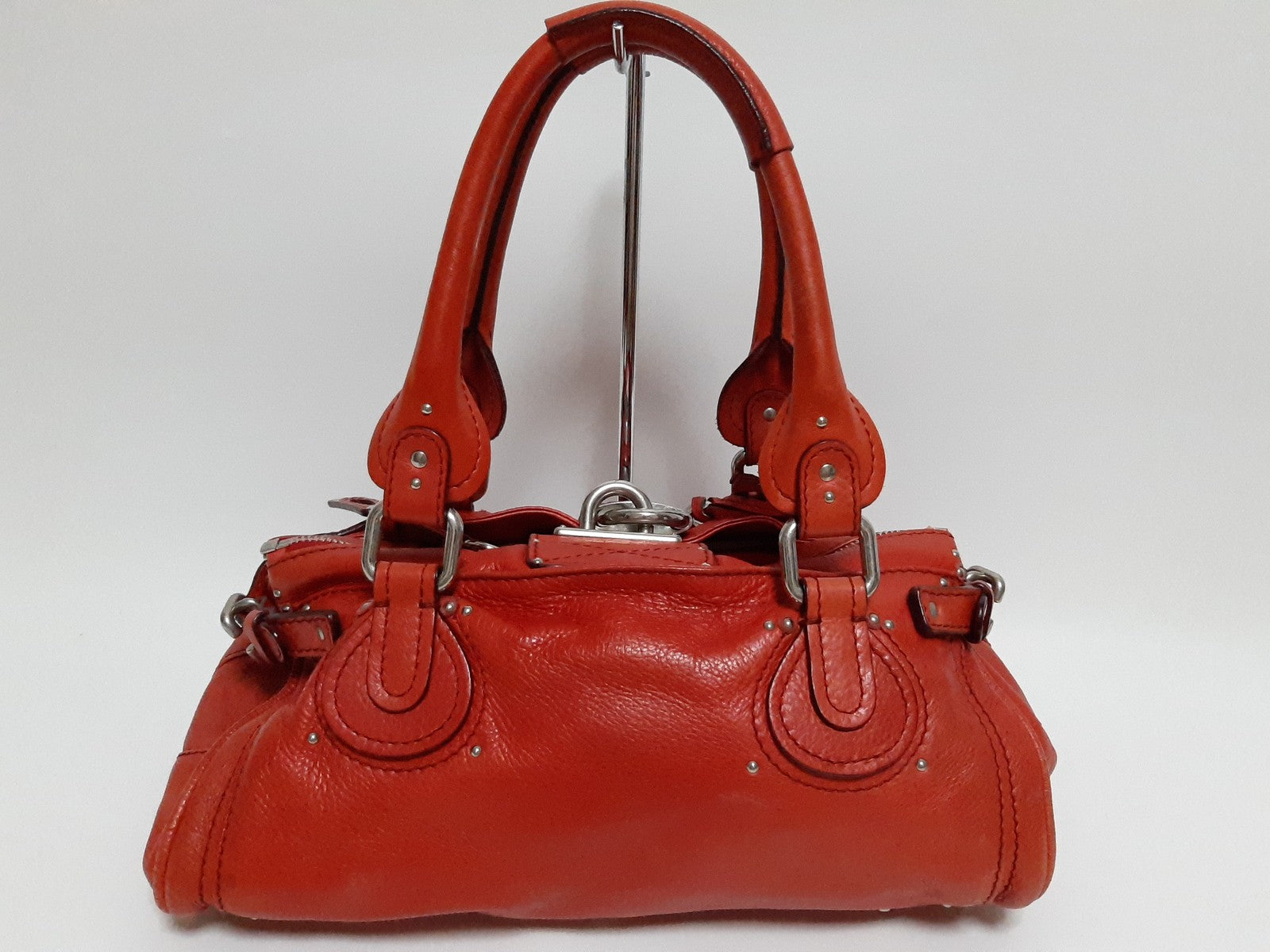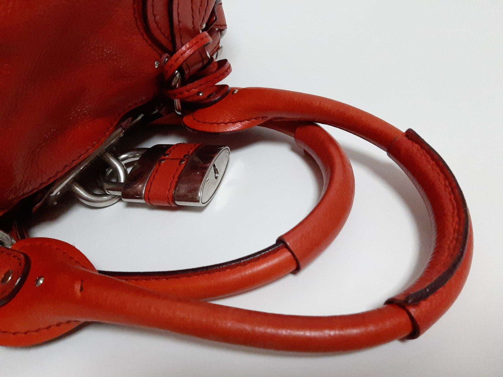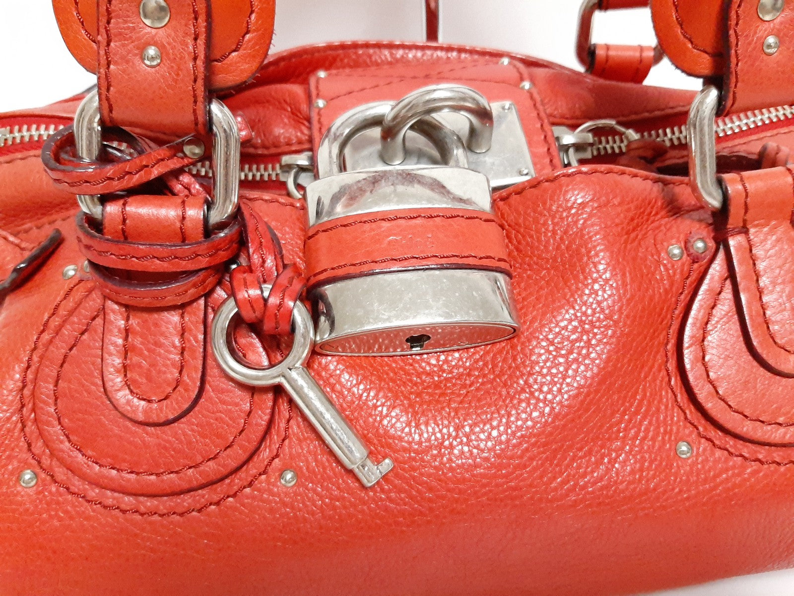 Chloe Paddington Red Orange Silver Padlock Key Tote Hand Shoulder Women's Bag