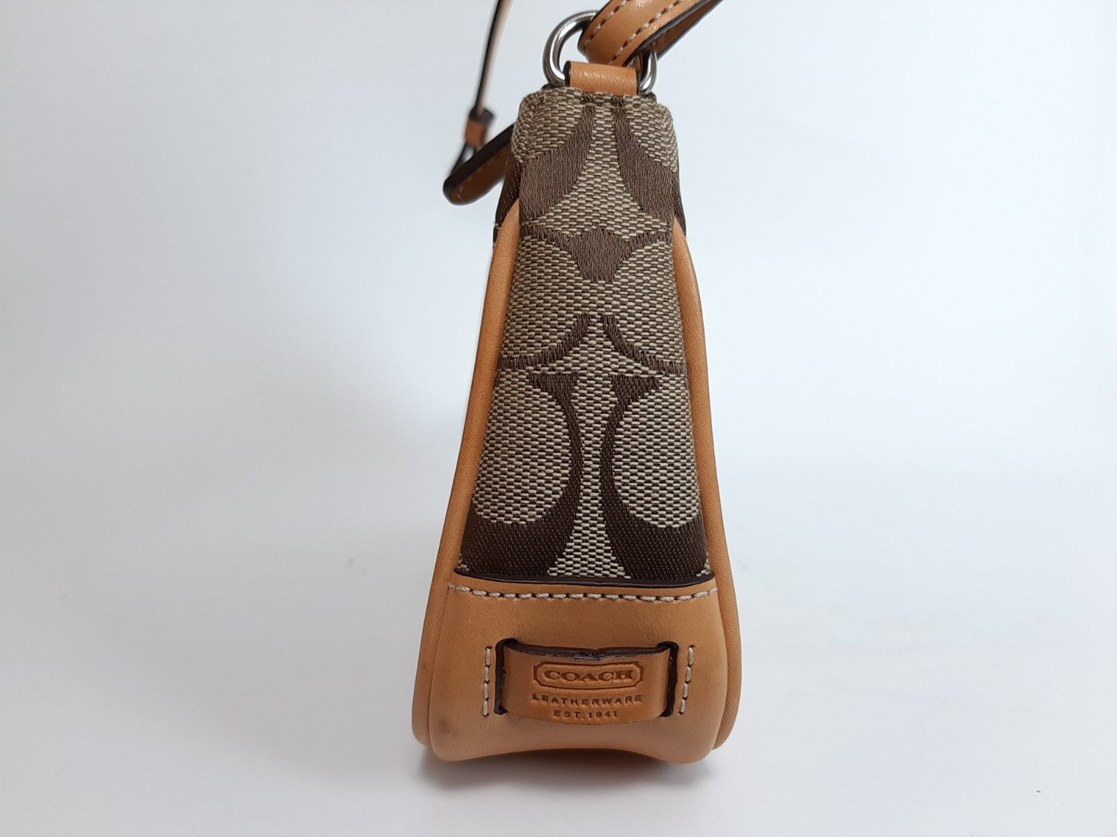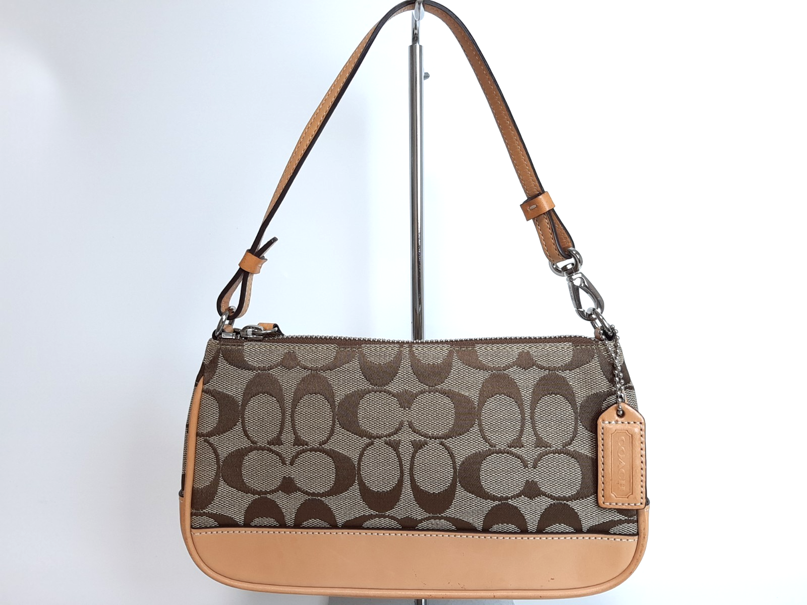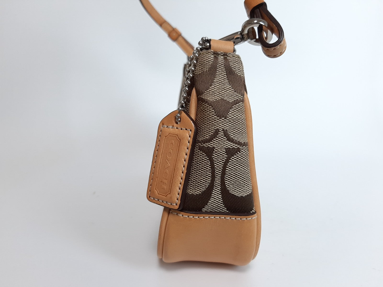Coach Signature Demi mini Pouch Hand Bag Canvas Leather Brown Beige 0724