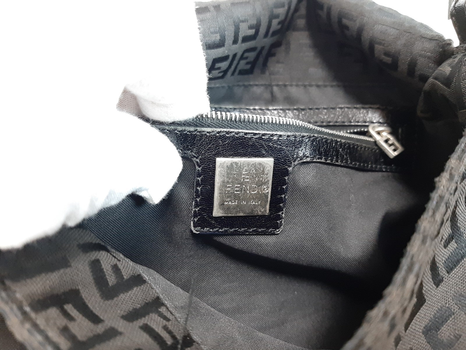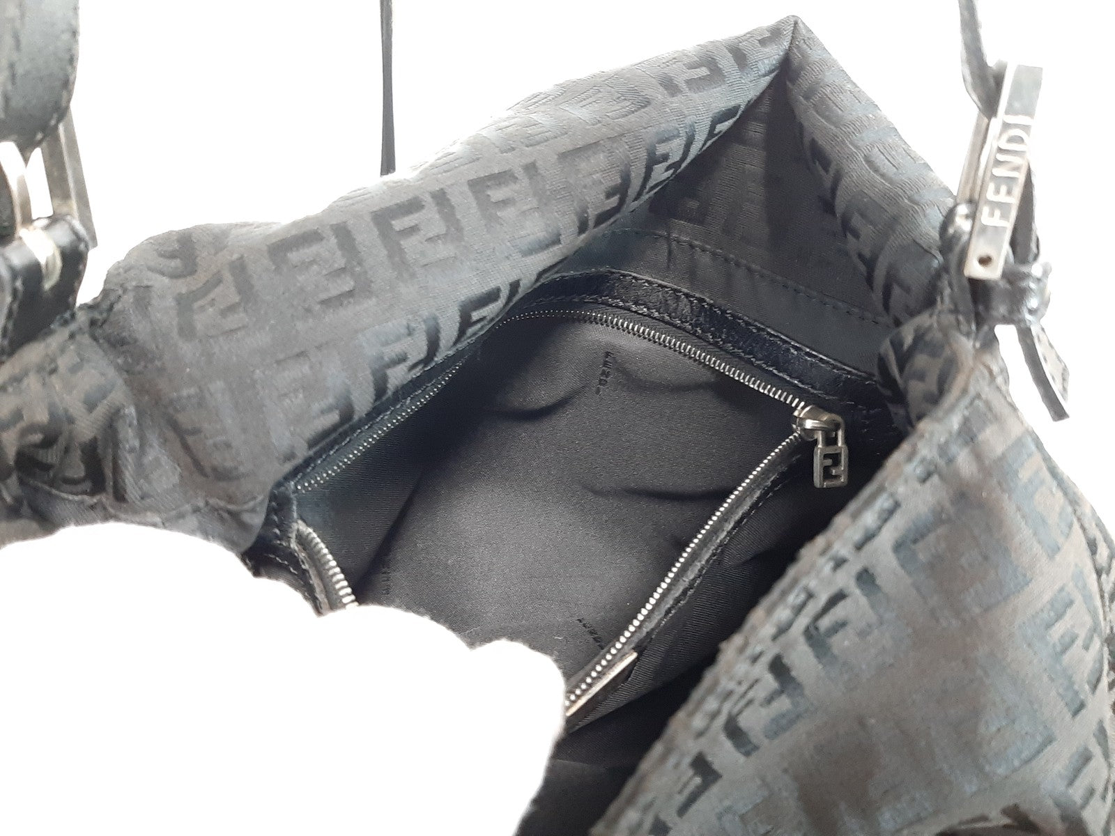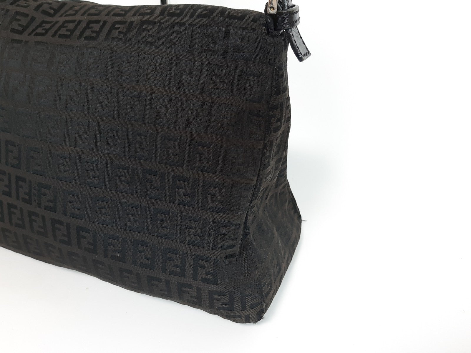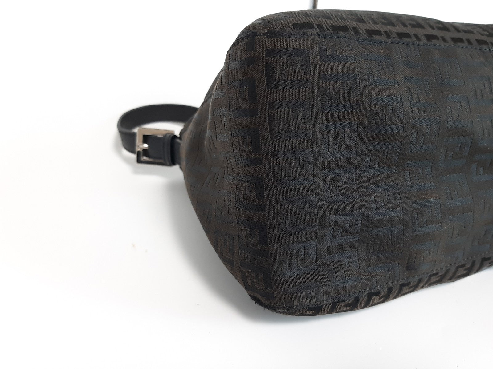FENDI Zucca Mamma Baguette Shoulder Hand Bag Canvas Leather Black