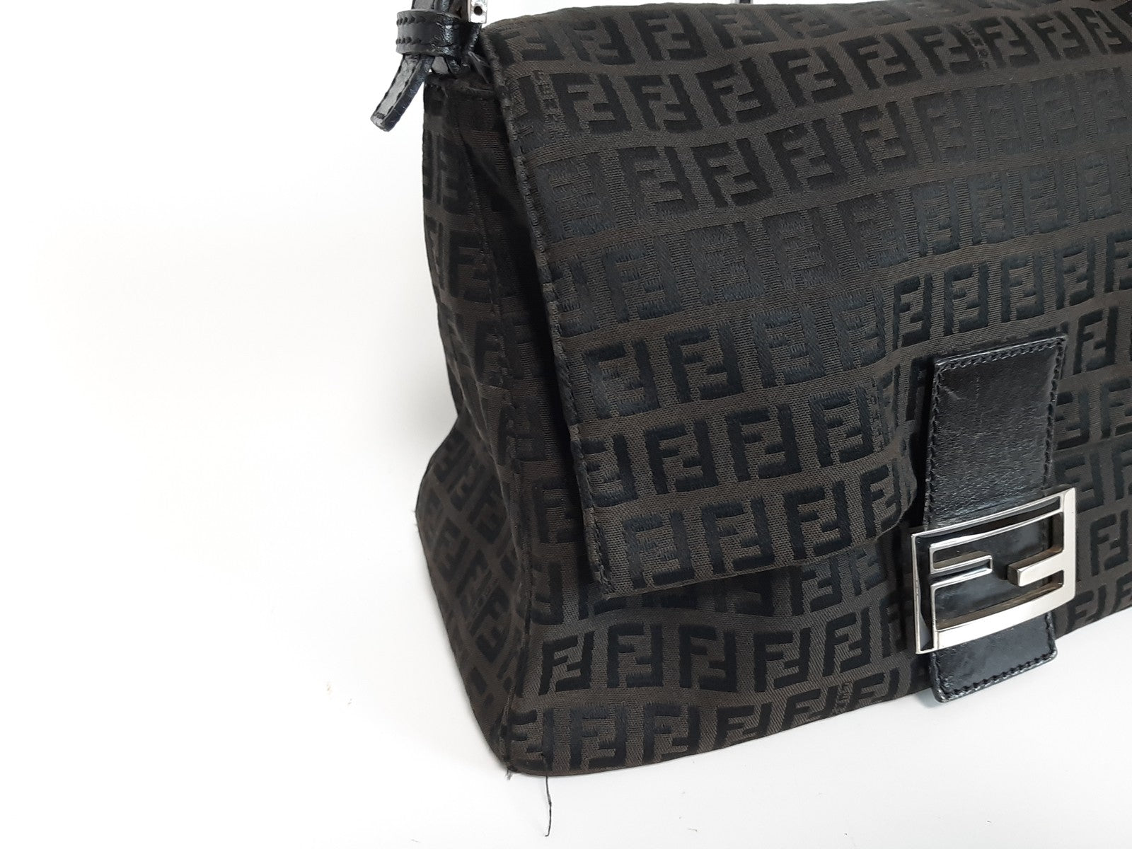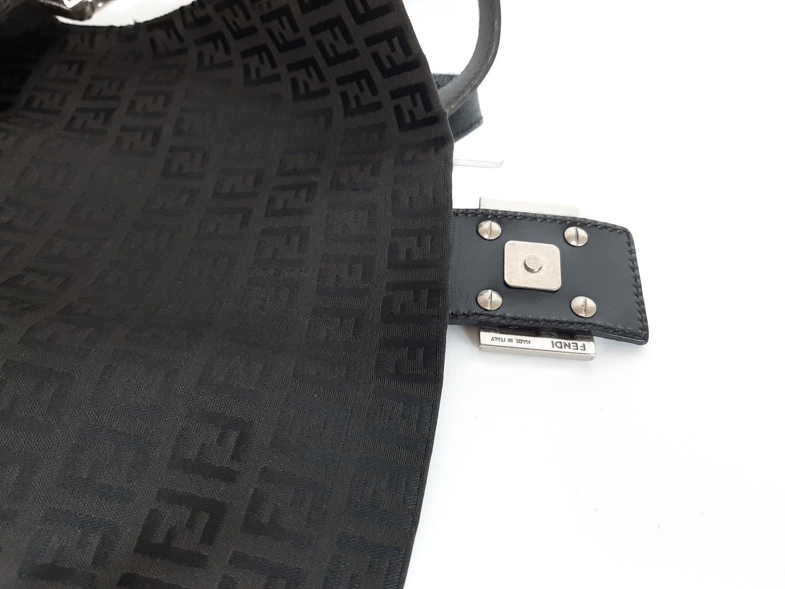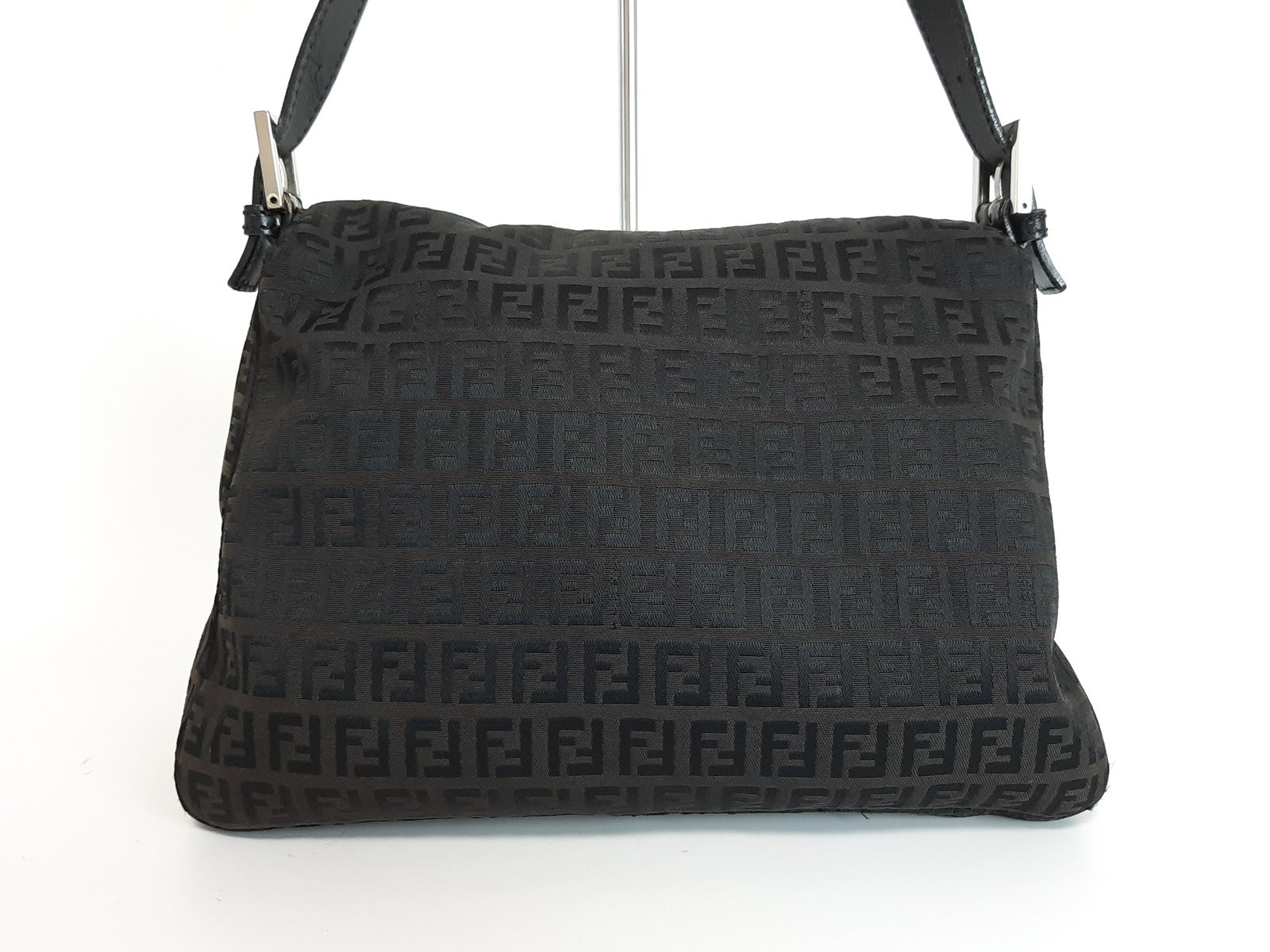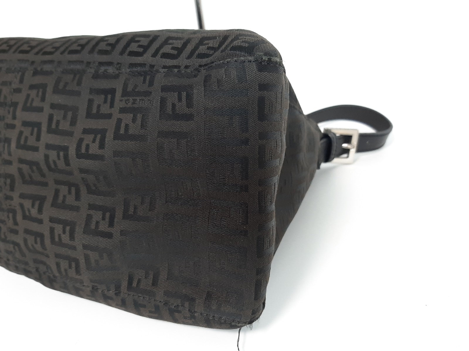 FENDI Zucca Mamma Baguette Shoulder Hand Bag Canvas Leather Black