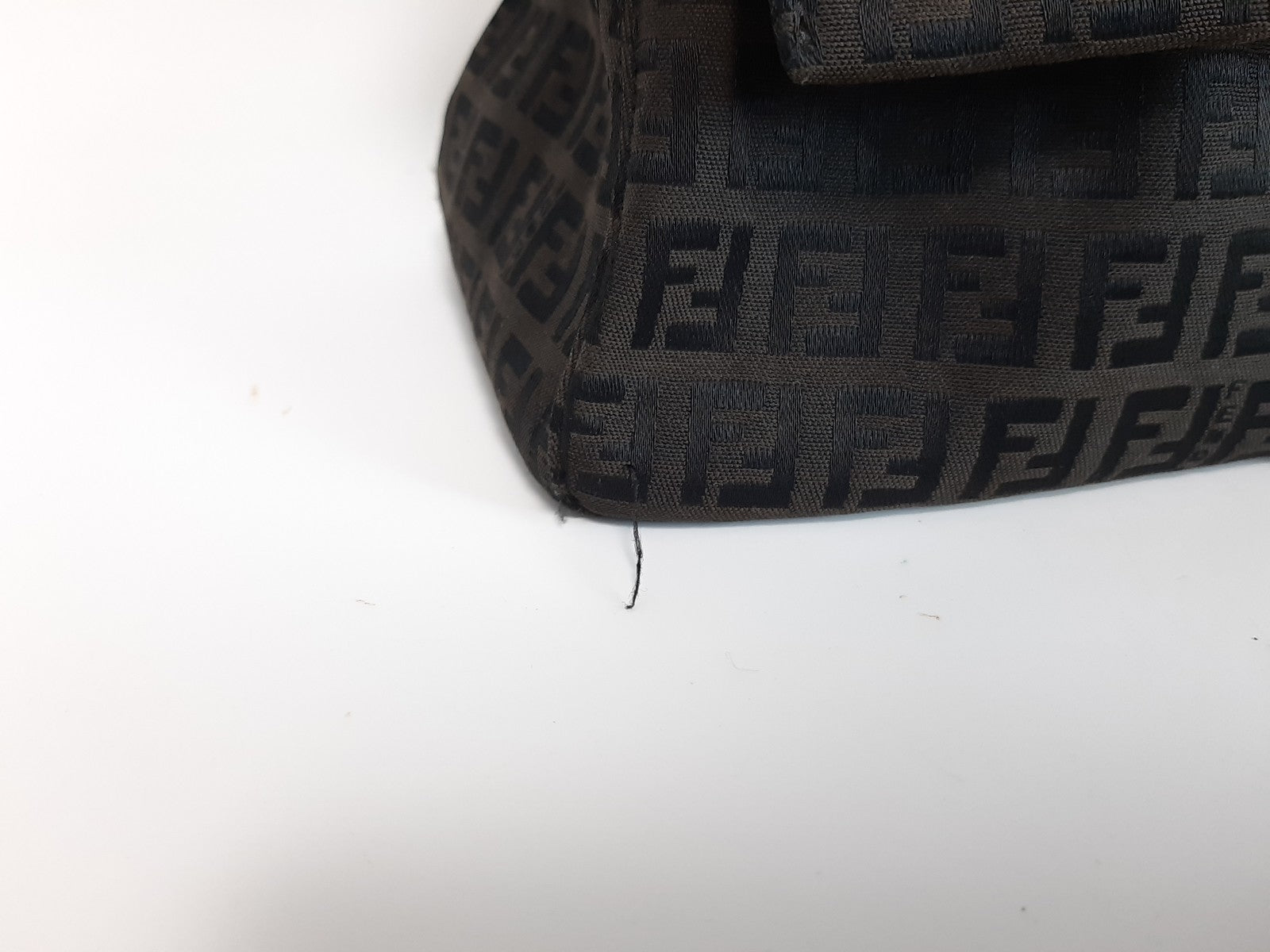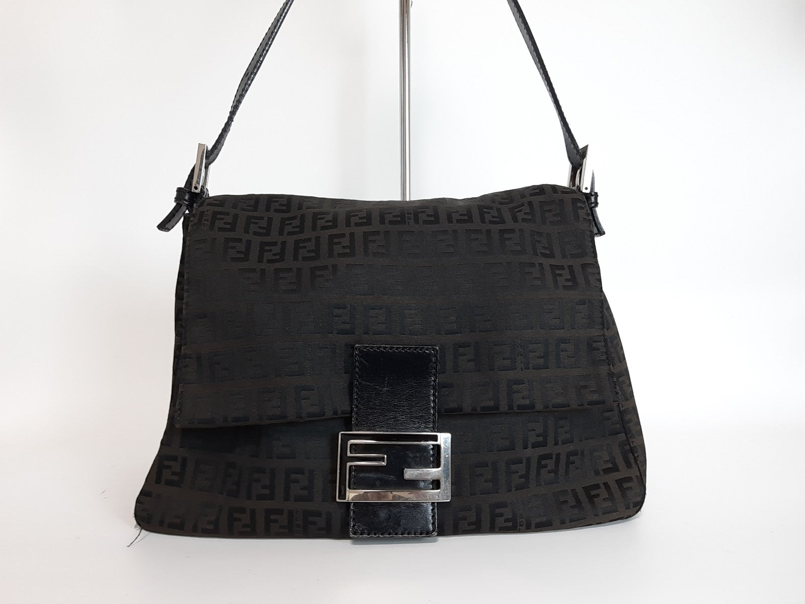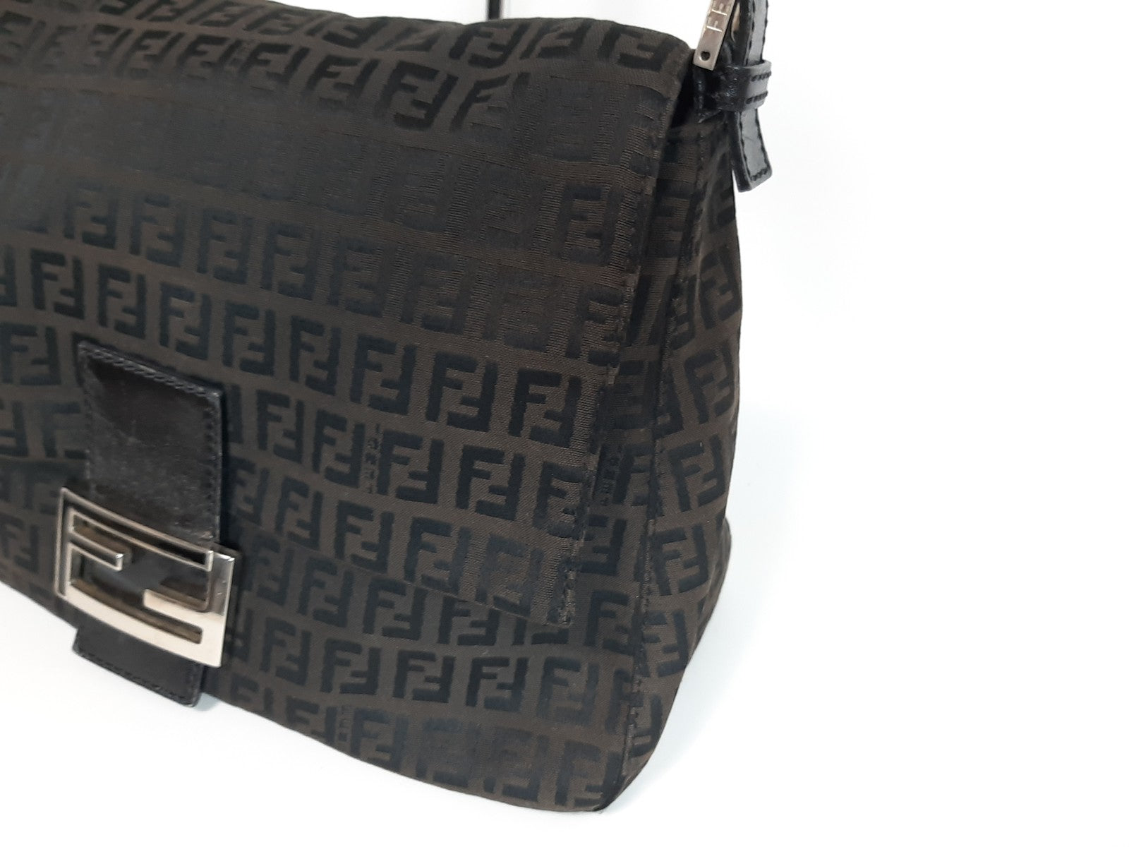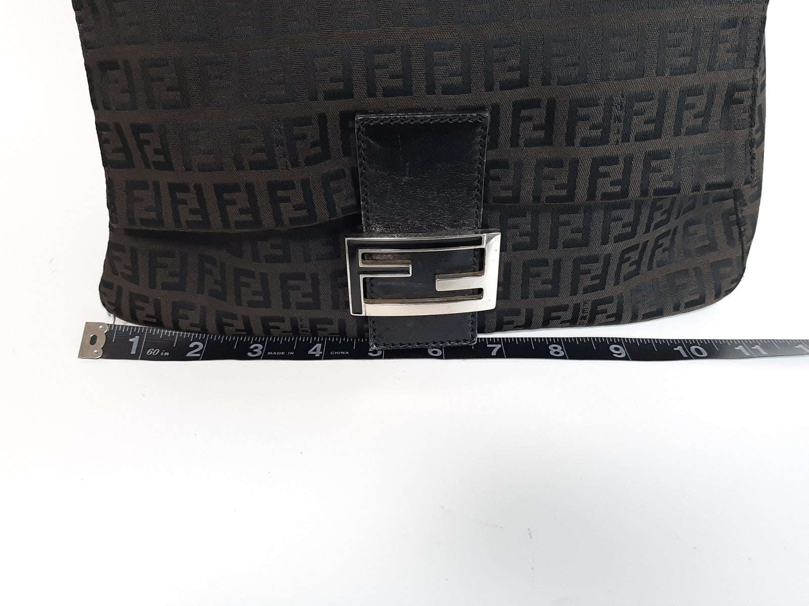 FENDI Zucca Mamma Baguette Shoulder Hand Bag Canvas Leather Black