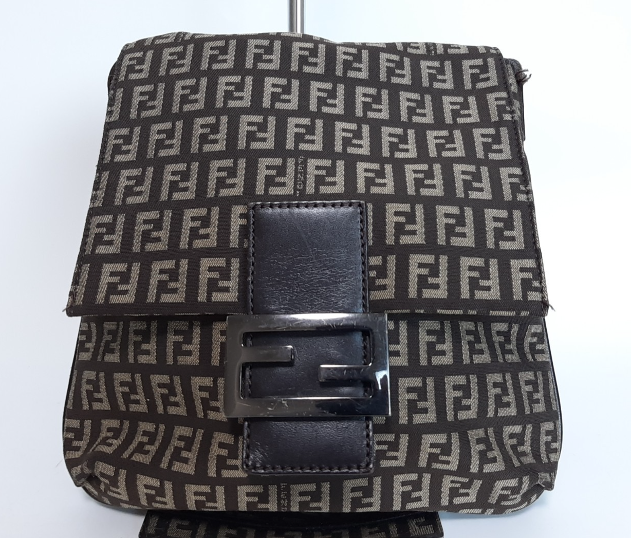 FENDI Zucca Mamma Baguette Shoulder Hand Bag Canvas Leather Brown1