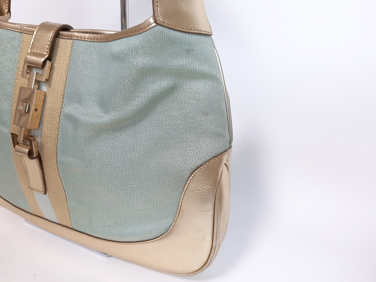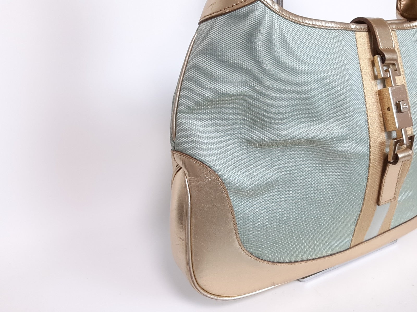 Gucci Jackie Handbag One Shoulder Tote Bag Blue Gold Hardware 0013306 0162